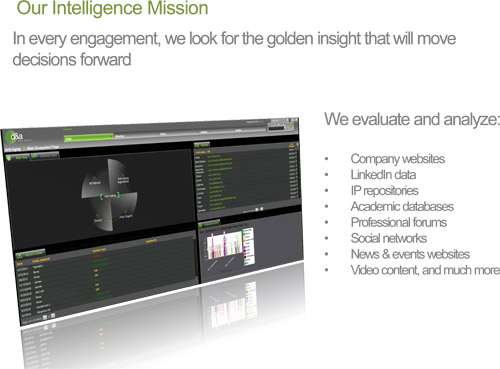 Based on intelligence collection methodologies. We adopt Big Data analytics and creative data sources as basic infrastructure needs; these elements enable us to build a comprehensive overview of the ecosystem.